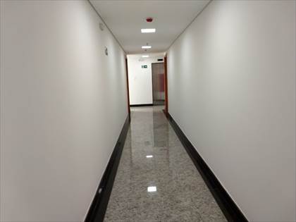 Sala com 75 m² e duas vagas de garagem livres, cobertas e demarcadas.
