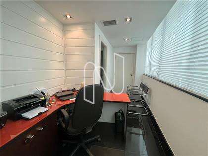 - Sala, ideal para investidores, com área útil de aproximadamente 75,00 m², com piso em porcelanato, teto rebaixado em gesso com projeto luminotécnico, ar condicionado central, e a seguinte configuração: