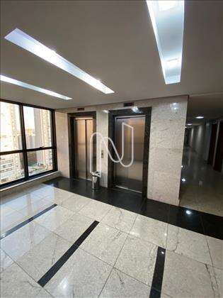 Prédio:Prédio imponente, em cerâmica e vidro na fachada e laterais, com lojas embaixo.